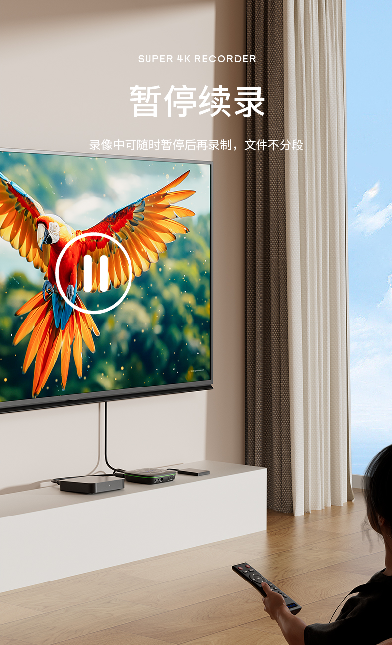 ●支持暂停续录,录制中可随时暂停再录制,文件不分段;