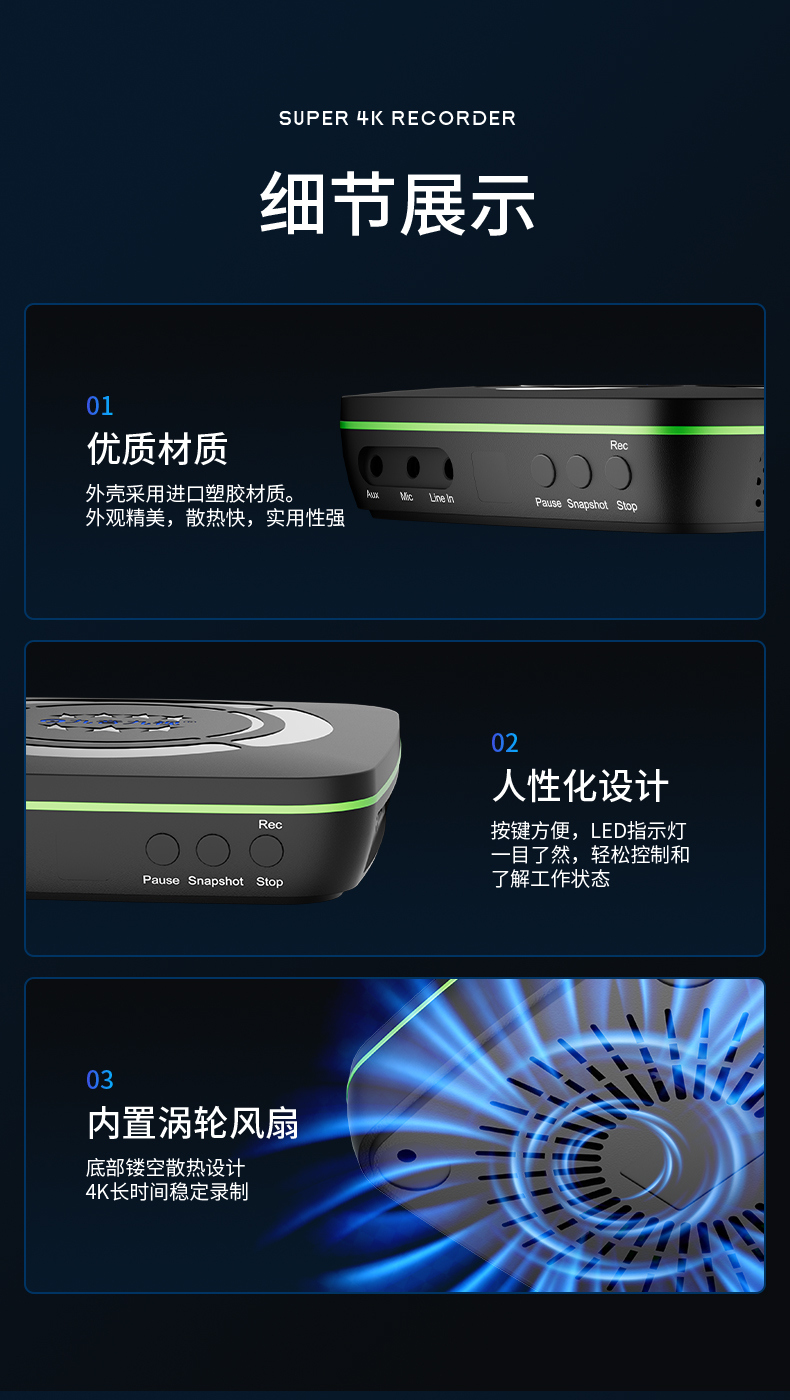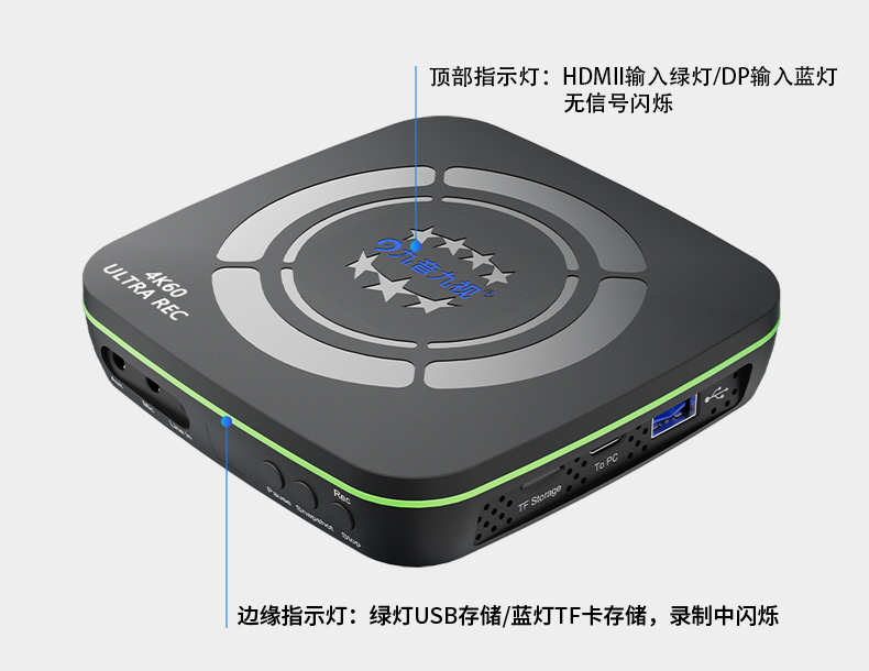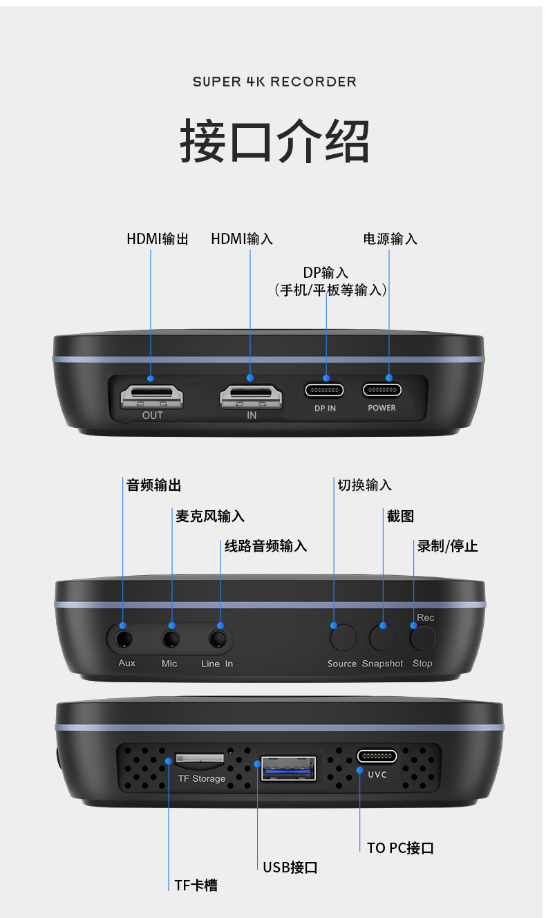 ●支持DP信号输入录制(手机/平板/电脑type-c直接输入);