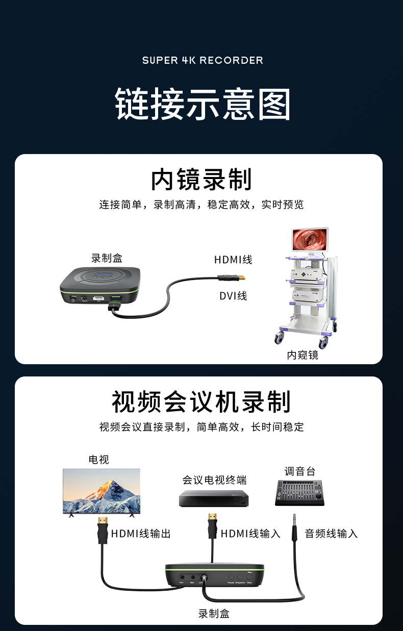 JS3093真4K60高清视频录制盒存储暂停续录机医疗腹