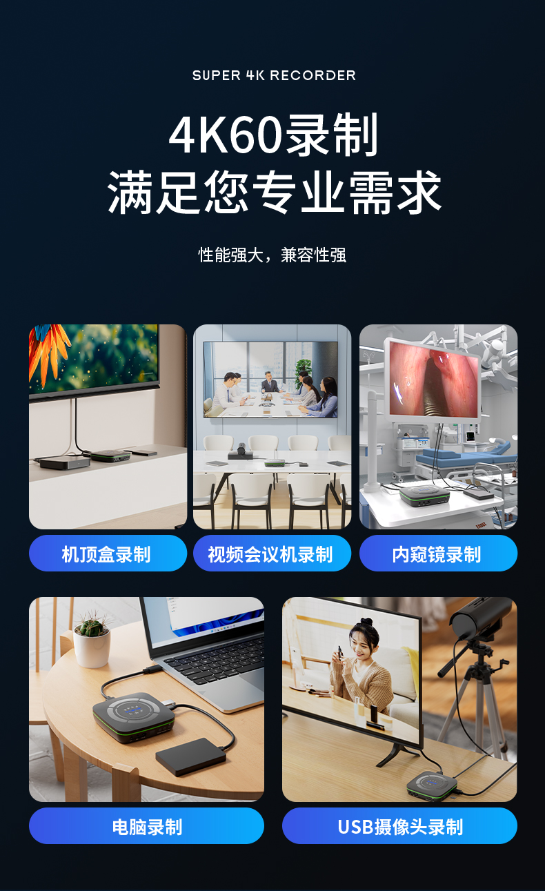 高兼容性,可兼容各种接口输出录制,适用广泛