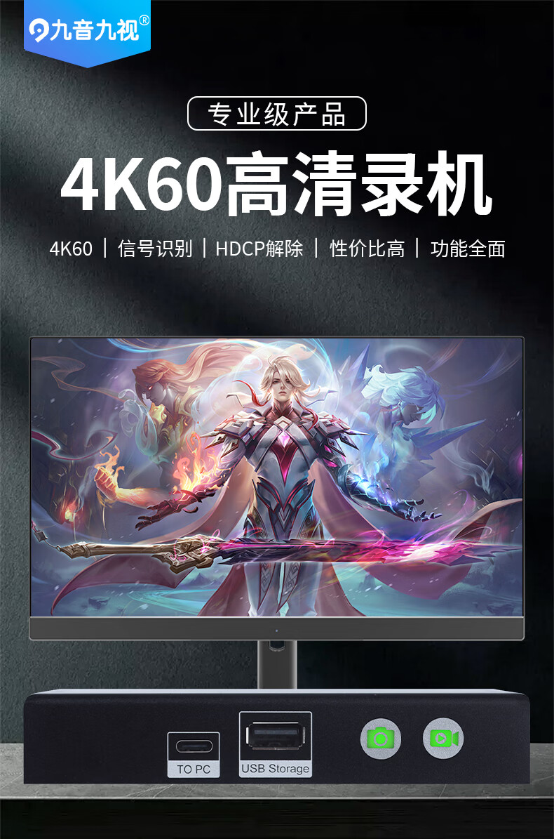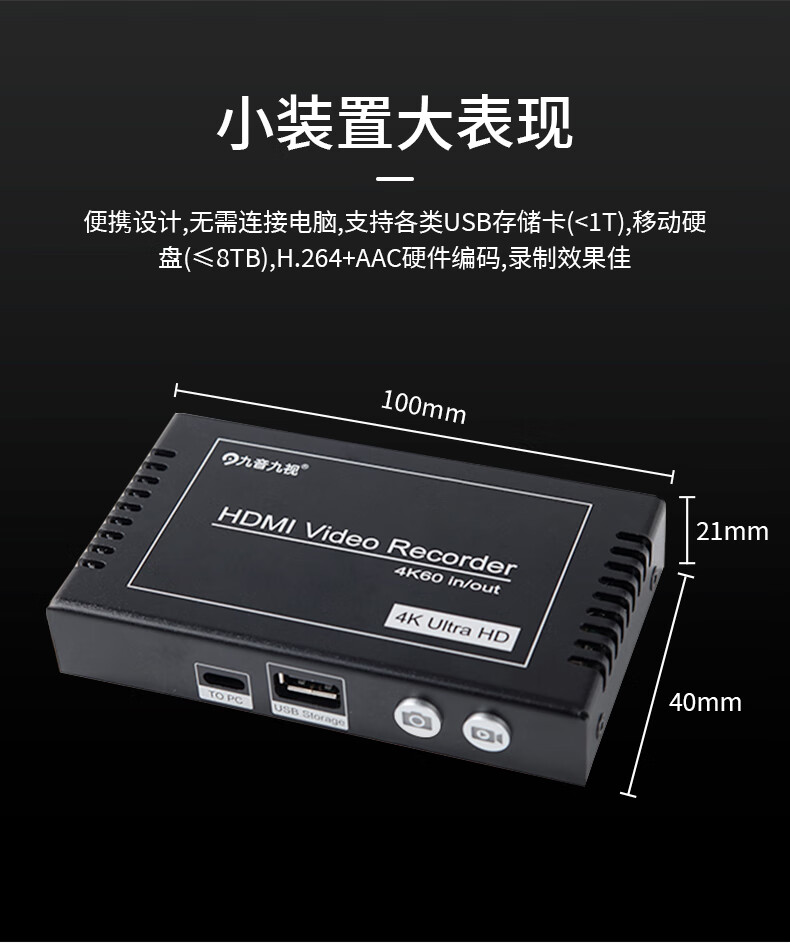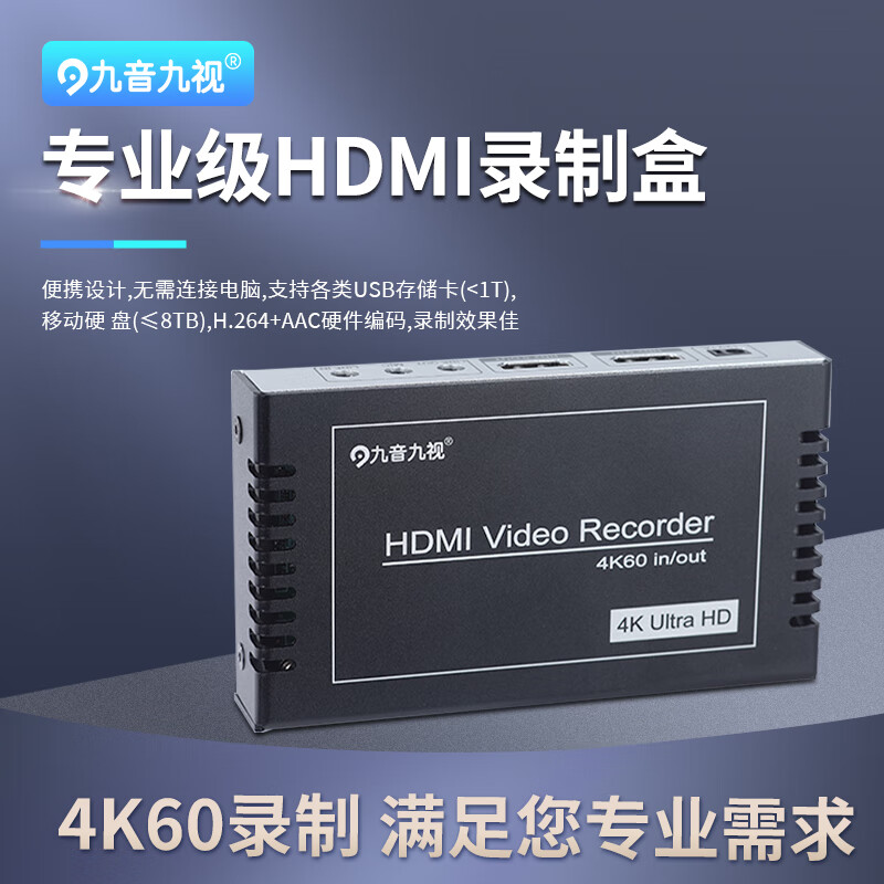 九音九视JS3095真4K60高清HDMI录制盒采集器