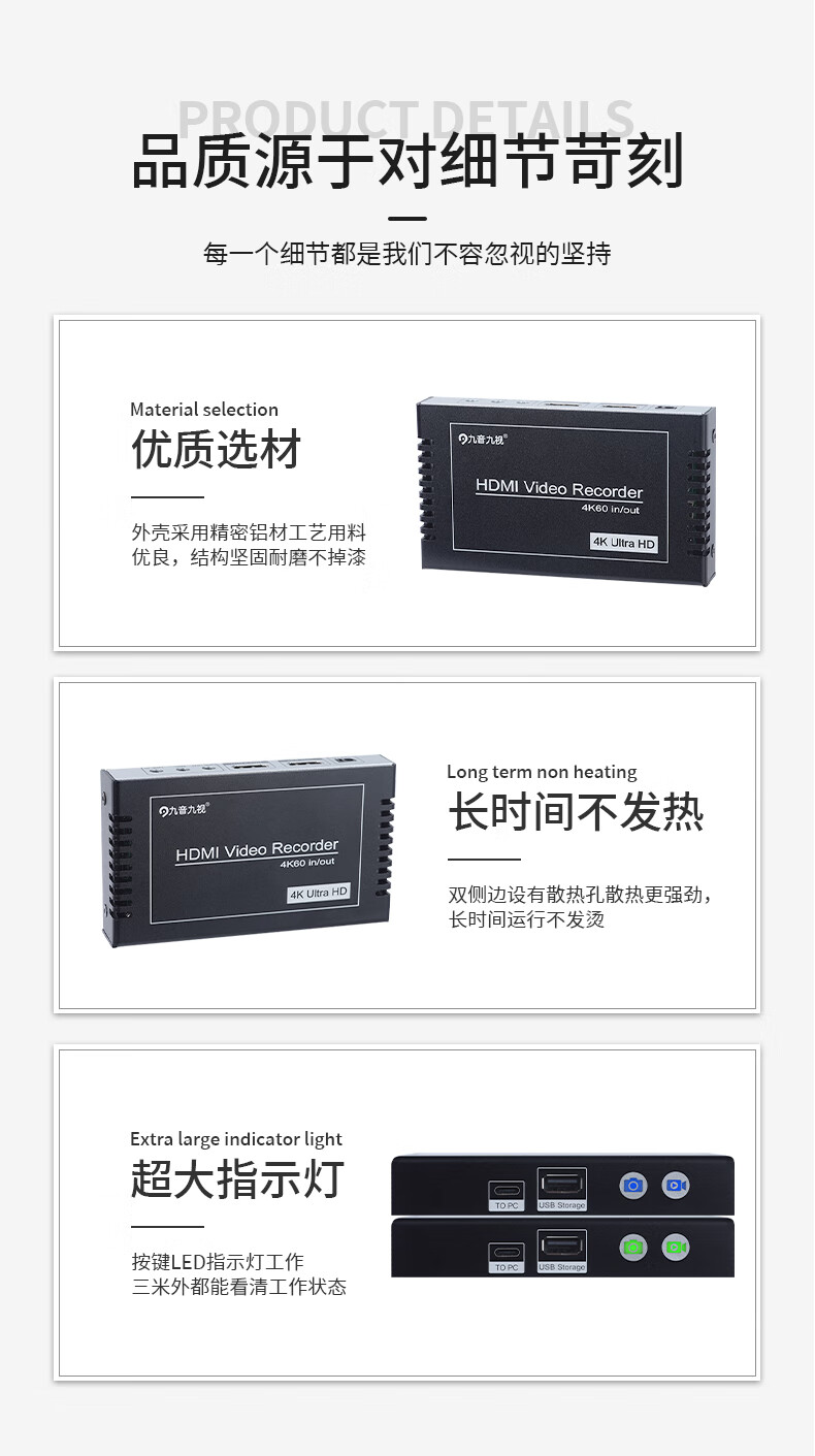 九音九视JS3050 4K高清录制盒HDMI/VGA/分量
