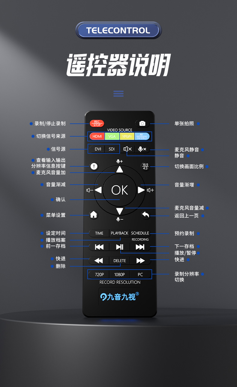 九音九视JS3092真4K高清HDMI录制盒带暂停续