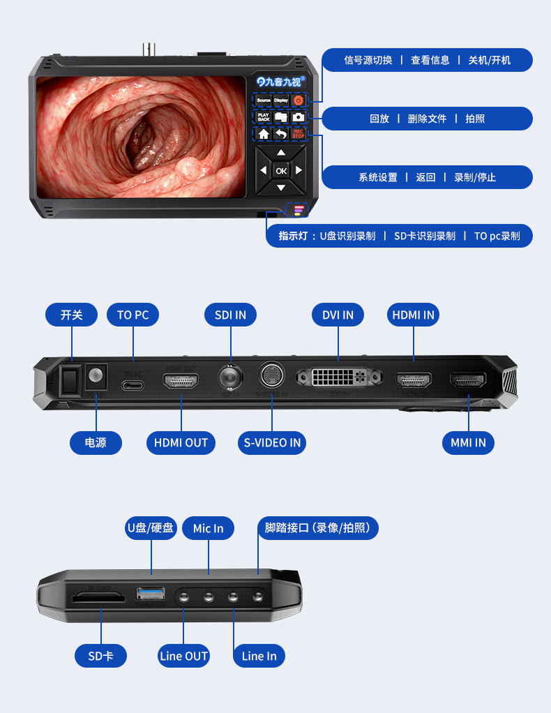 > SDI/HDMI/DVI/S-video手术视频全接口带屏录机(HD90)