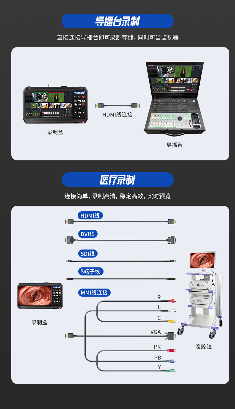 SDI/HDMI/DVI/S-video手术视频全接口带屏录机