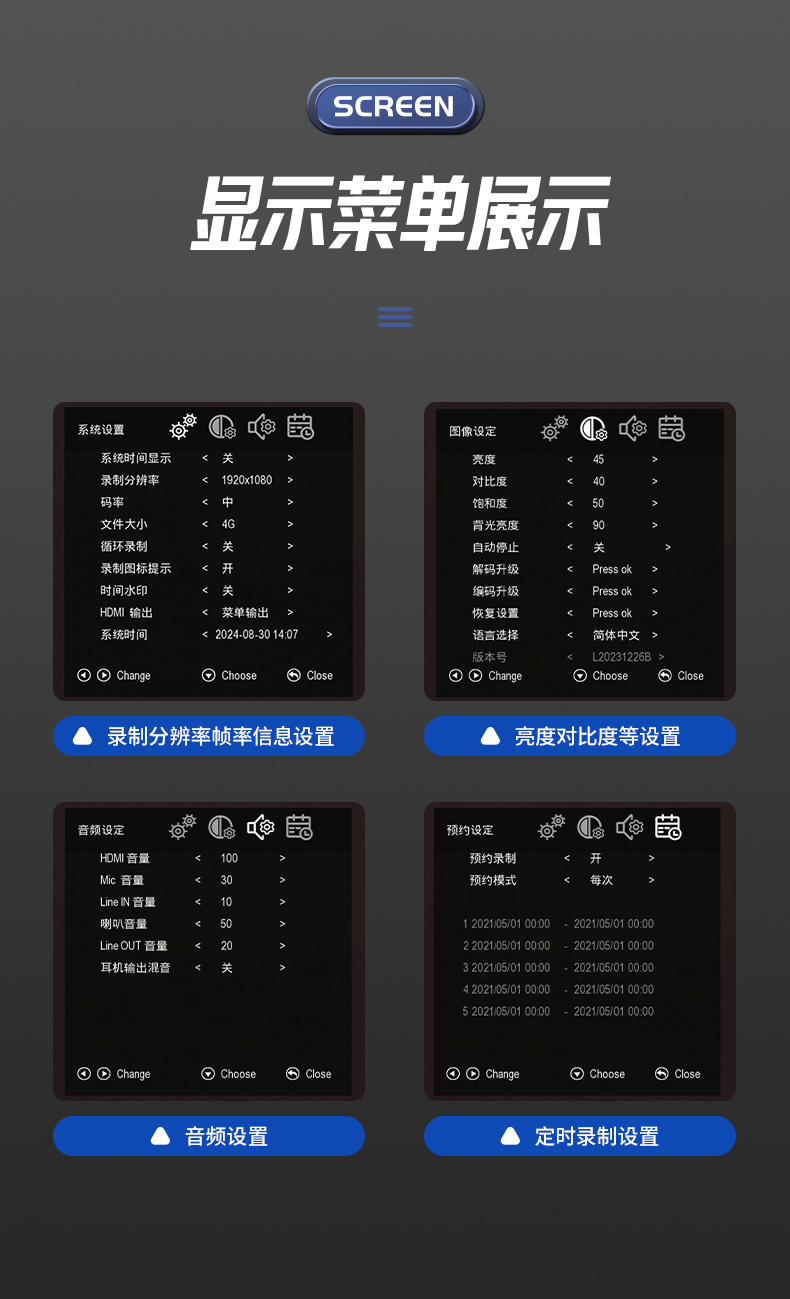 九视HD60高清HDMI带屏幕监视录制盒记录单